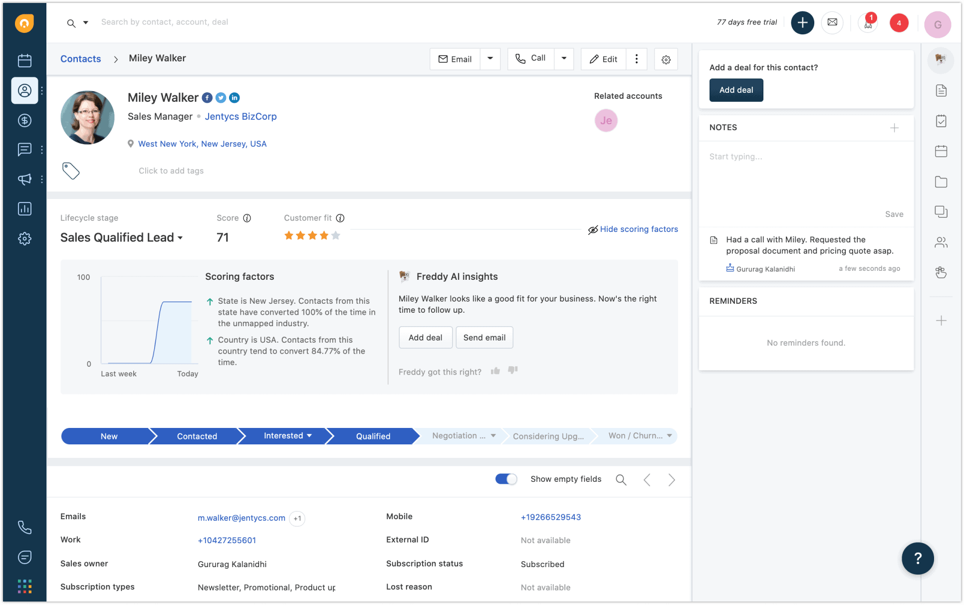 Recommandé pour sa facilité d’utilisation, Freshworks propose une interface moderne et intuitive.