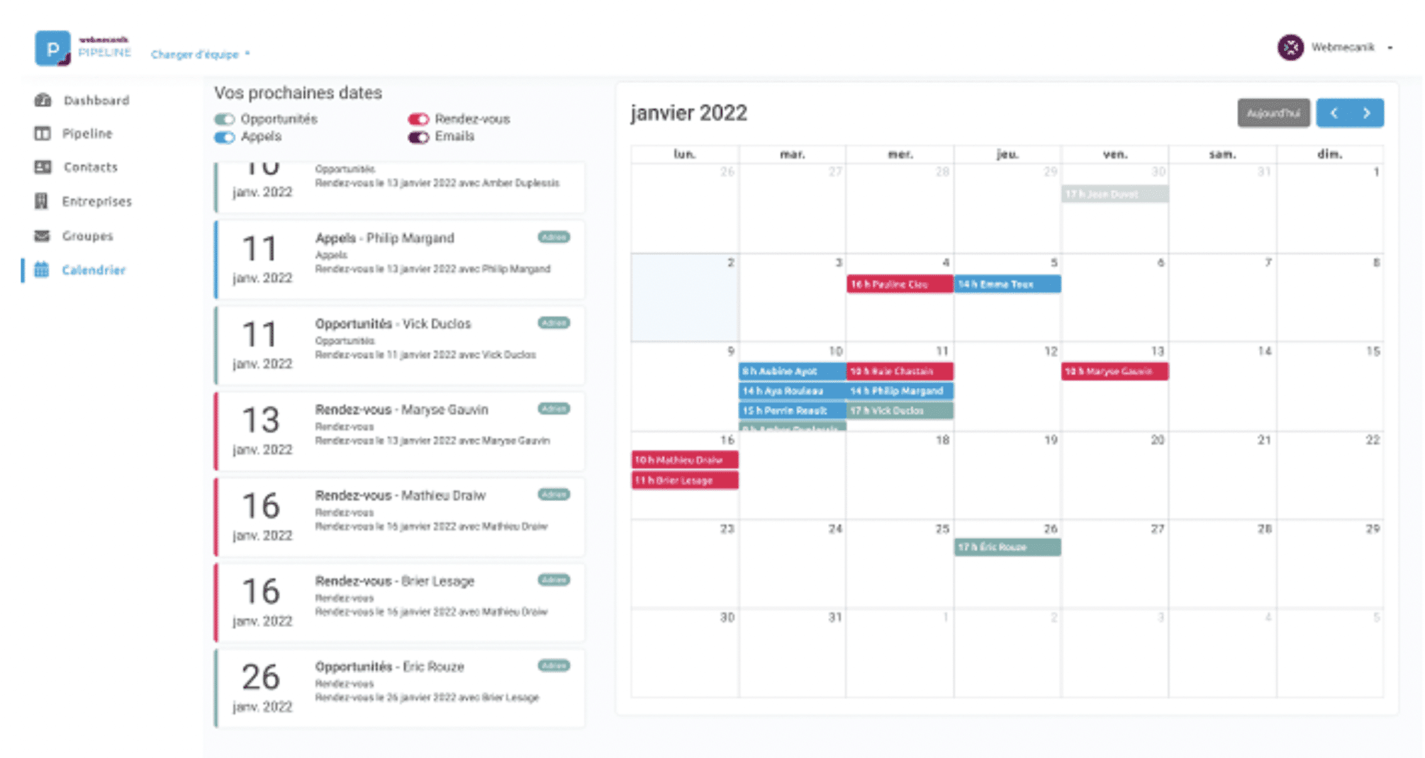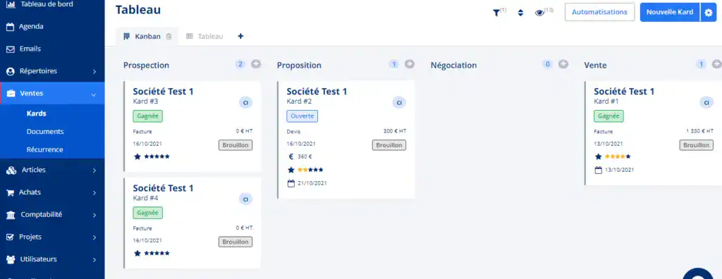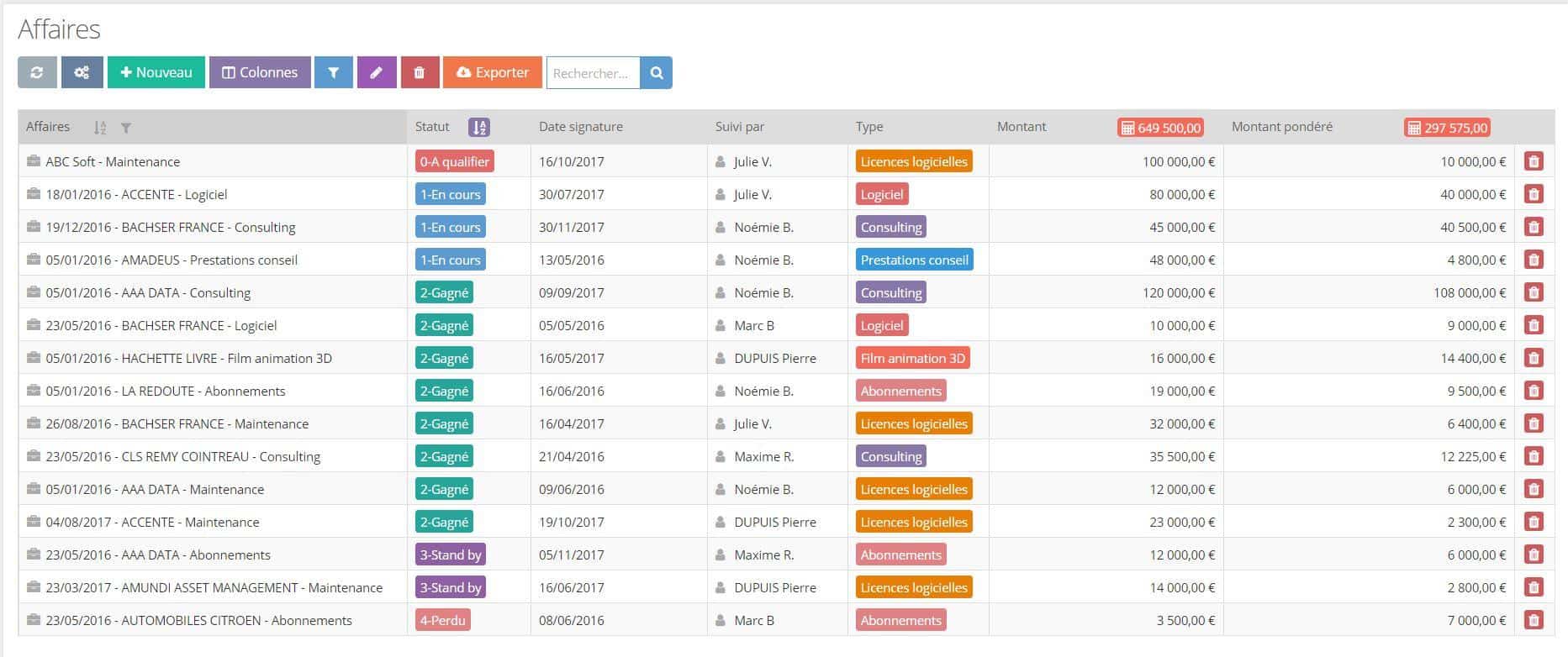 - Une gestion claire et personnalisable de vos prospects et clients.