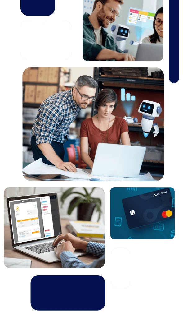 AXONAUT c'est donc une solution complète (Devis, Factures, Relances, Dépenses, Gestion commerciale, CRM, Gestion de stock, Compte Pro, Projets, Trésorerie …) simple et structurante, et synchronisée avec les logiciels comptables.